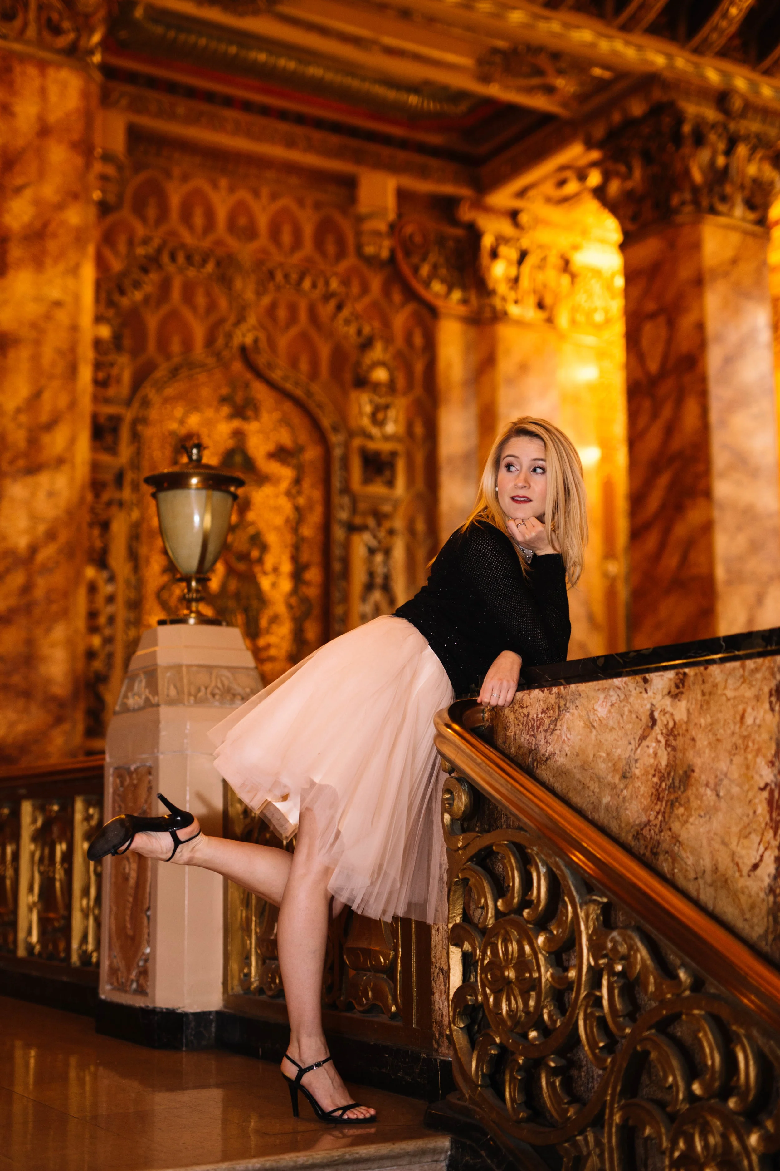 The theatre offers a breathtaking and grandiose backdrop for portraits, though with minimal lighting. I used my external flash to capture both actresses.
